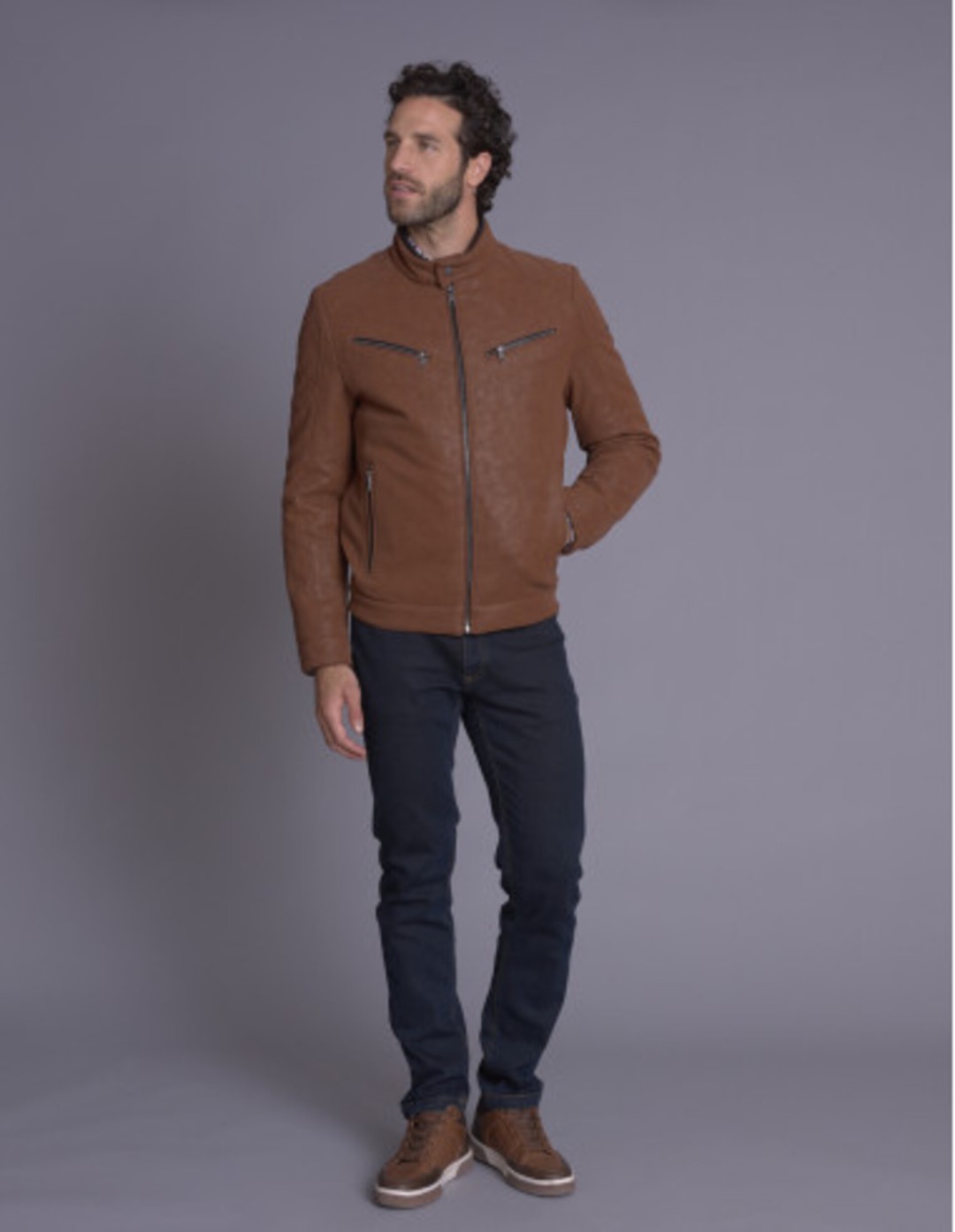 Confectionné en 100 % polyuréthane (aspect cuir), il offre une excellente résistance, une belle souplesse et un confort optimal tout en conservant l’esthétique noble du cuir. Son col rond, sa fermeture zippée centrale et ses poches poitrine à rabats renforcent l’esprit Gentleman Driver. Le coloris whisky, chaud et raffiné, apporte une touche de caractère.