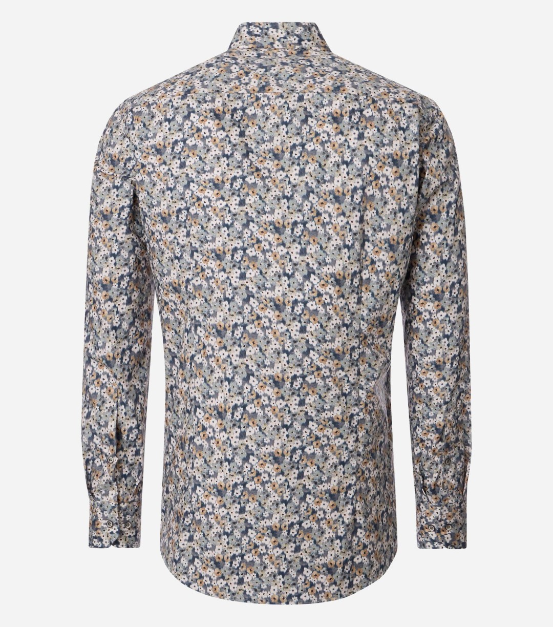 La chemise grise est un modèle élégant au motif floral raffiné, idéal pour apporter une touche moderne à vos tenues. Conçue en 100% coton pour un confort optimal, elle présente une coupe Modern Fit, des manches longues et un col classique. Sa qualité d'impression et sa finition soignées en font une pièce tendance et polyvalente, parfaite au bureau comme pour les sorties.