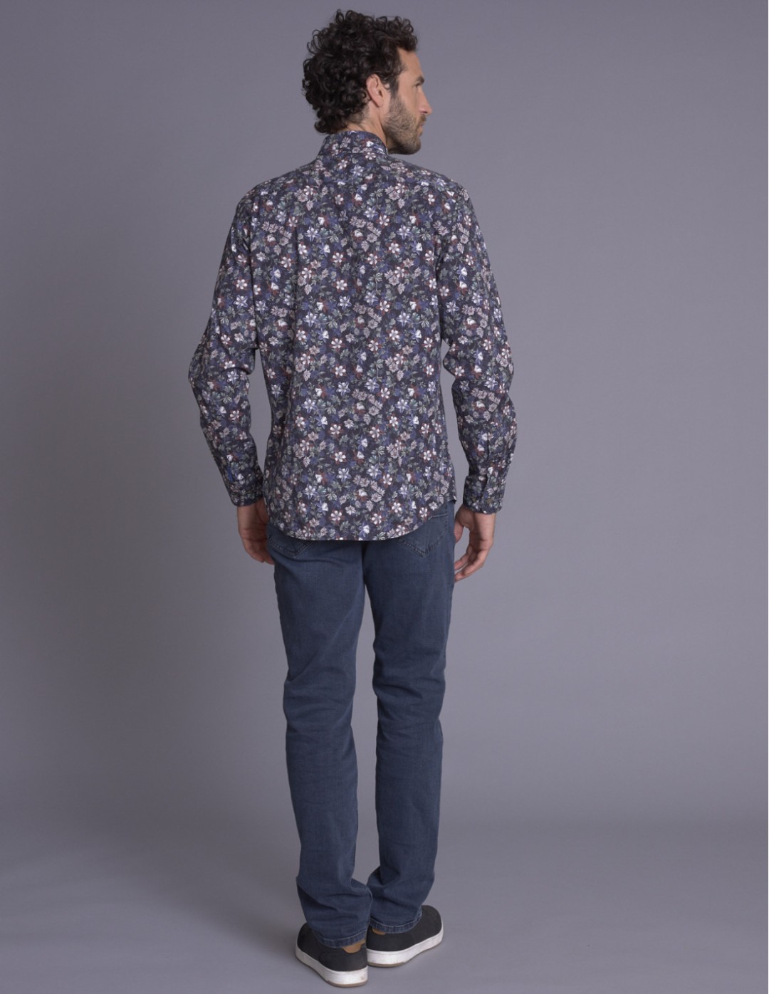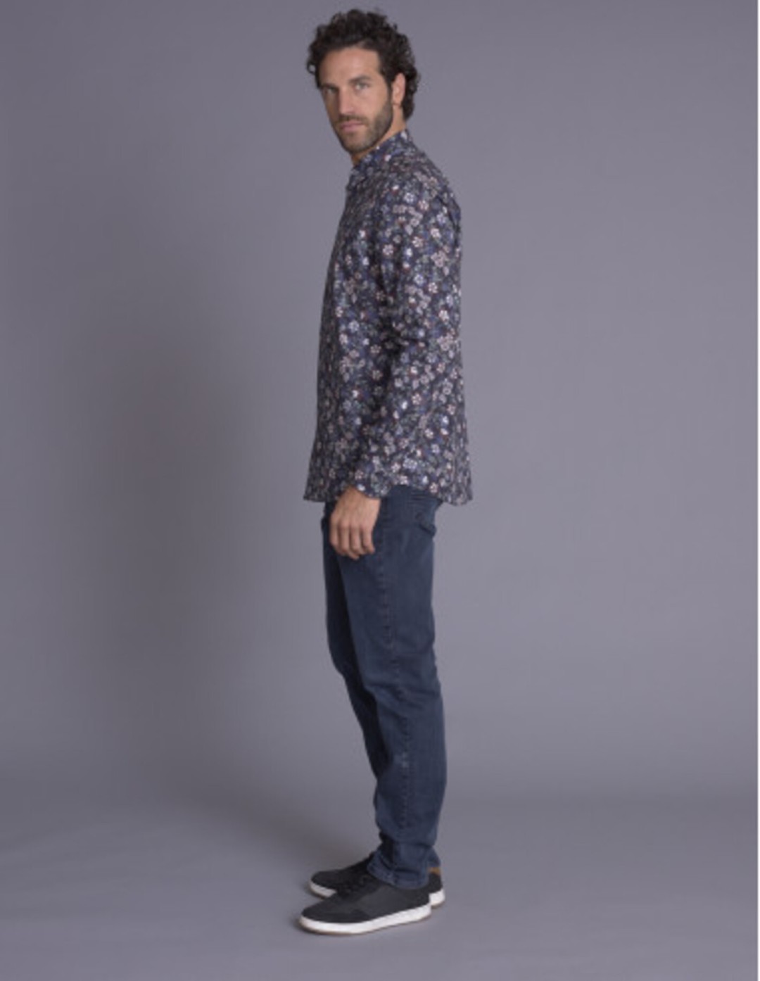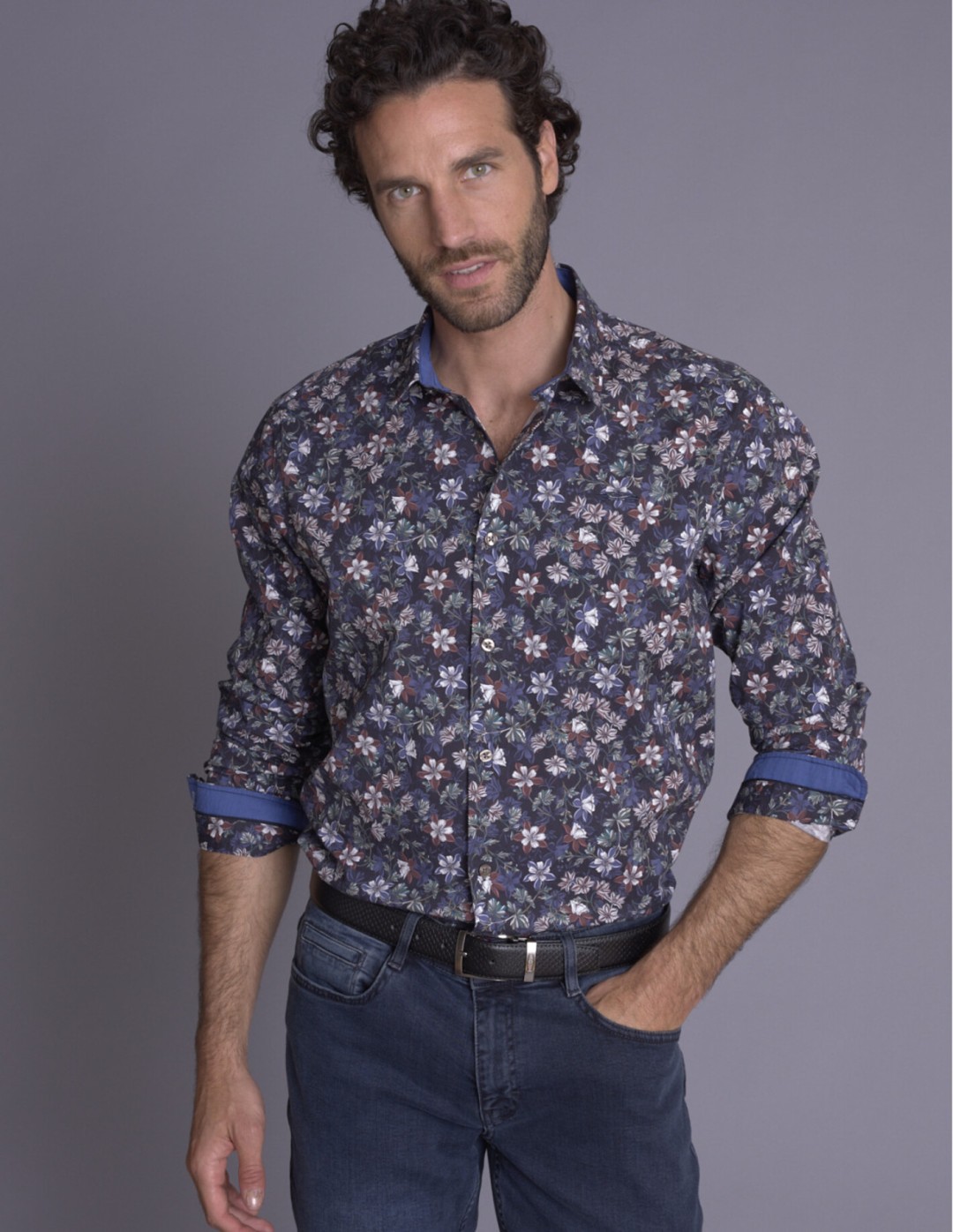 La chemise homme CHASTREIX bleu nuit se distingue par ses micro-motifs floraux élégants et son style urbain contemporain. Conçue en coton stretch, elle offre un confort optimal et une grande liberté de mouvement tout en conservant une coupe ajustée moderne.