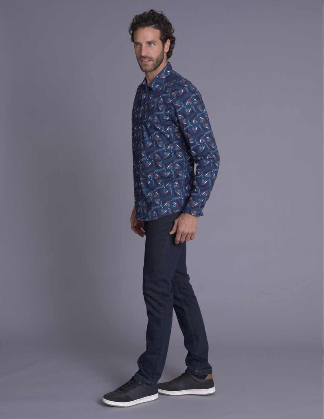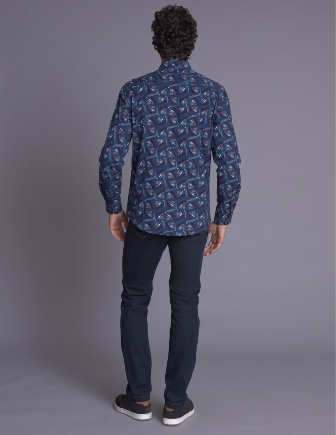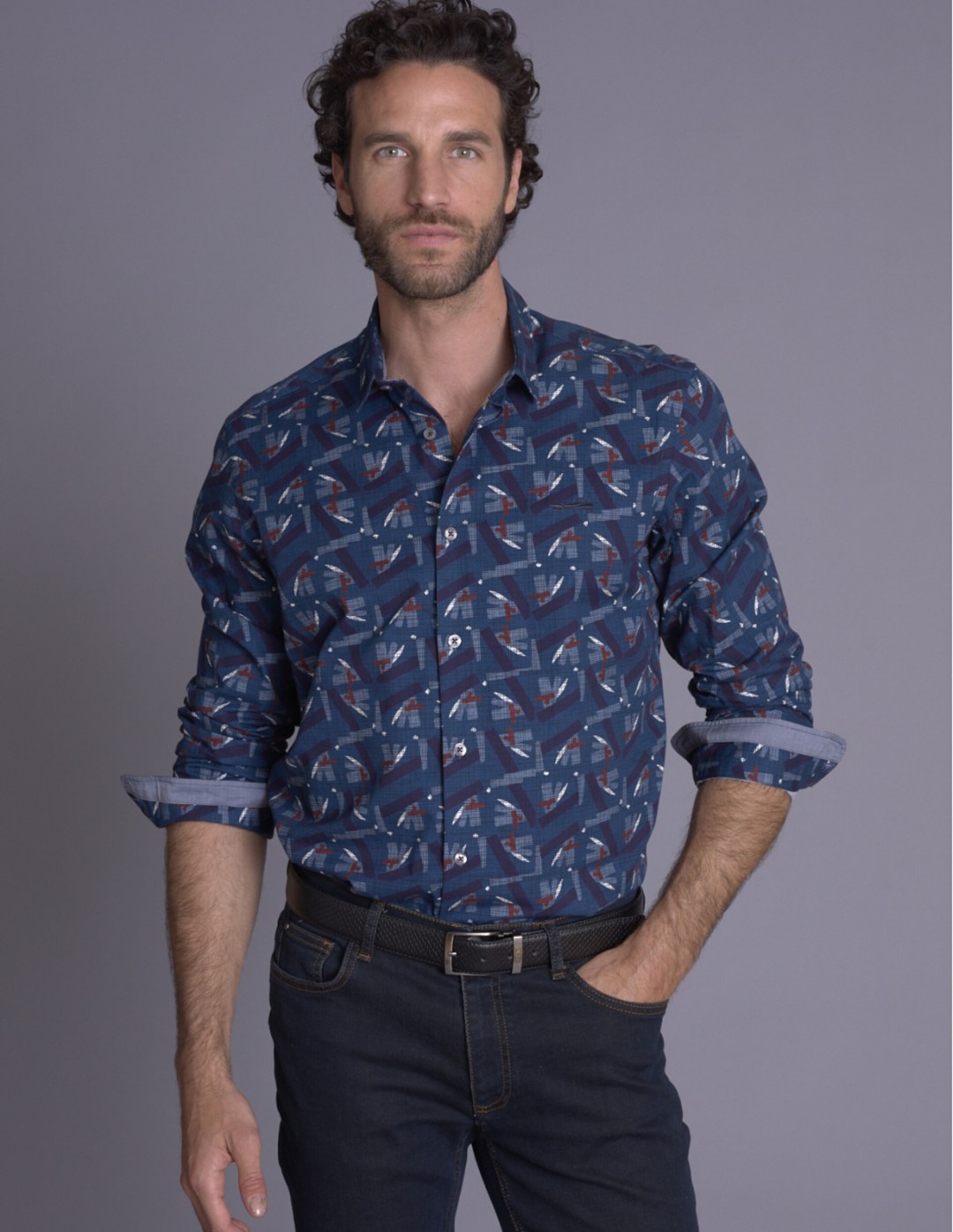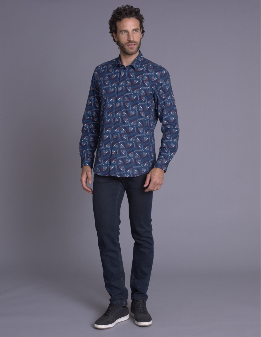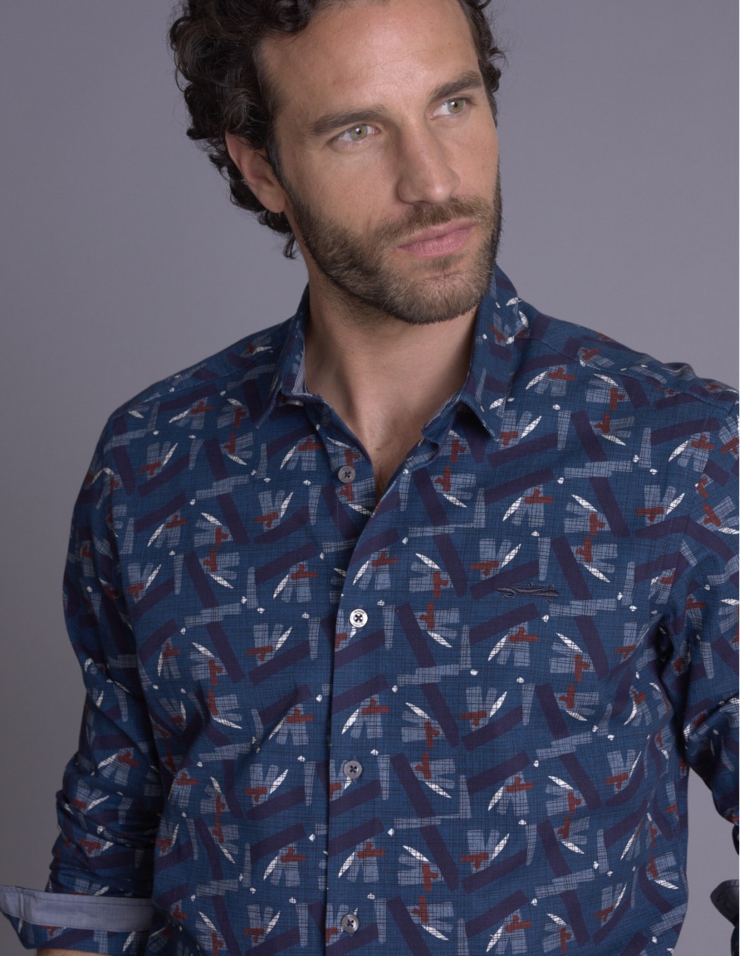 Découvrez la chemise homme comarcieu qui est un modèle bleu nuit rehaussé de motifs géométriques abstraits qui mêle modernité urbaine et élégance décontractée. Conçue en 100% coton premium, elle offre douceur, respirabilité et confort au quotidien. Sa coupe s'adapte à toute morphologie. Les détails soignés col pointu, boutonnage assorti, poignets boutonnés et imprimés colorés bleu clair, blanc et rouge en font une pièce originale et polyvalente.