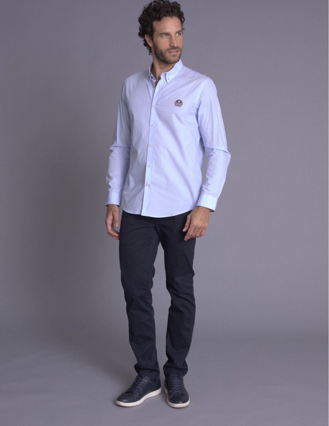 La chemise homme se distingue par son élégance et son coloris ciel rafraîchissant. Confectionnée en 100 % coton, elle offre une douceur naturelle et une excellente respirabilité. Sa coupe ajustée, son col structuré et son design uni en font une pièce moderne et polyvalente, rehaussée d'un logo racing brodé sur la poitrine. Avec ses manches longues à poignets boutonnés et sa boutonnière soignée, elle allie confort et style au quotidien. Cette chemise bleu ciel s'associe facilement à toutes les tenues grâce à son esthétisme épuré et intemporel.