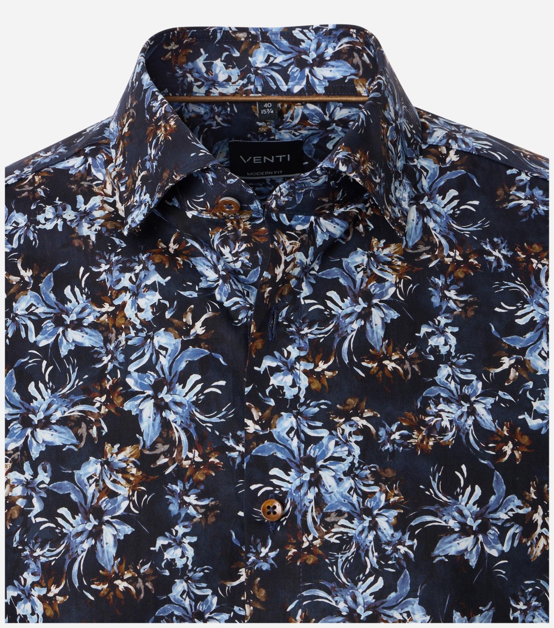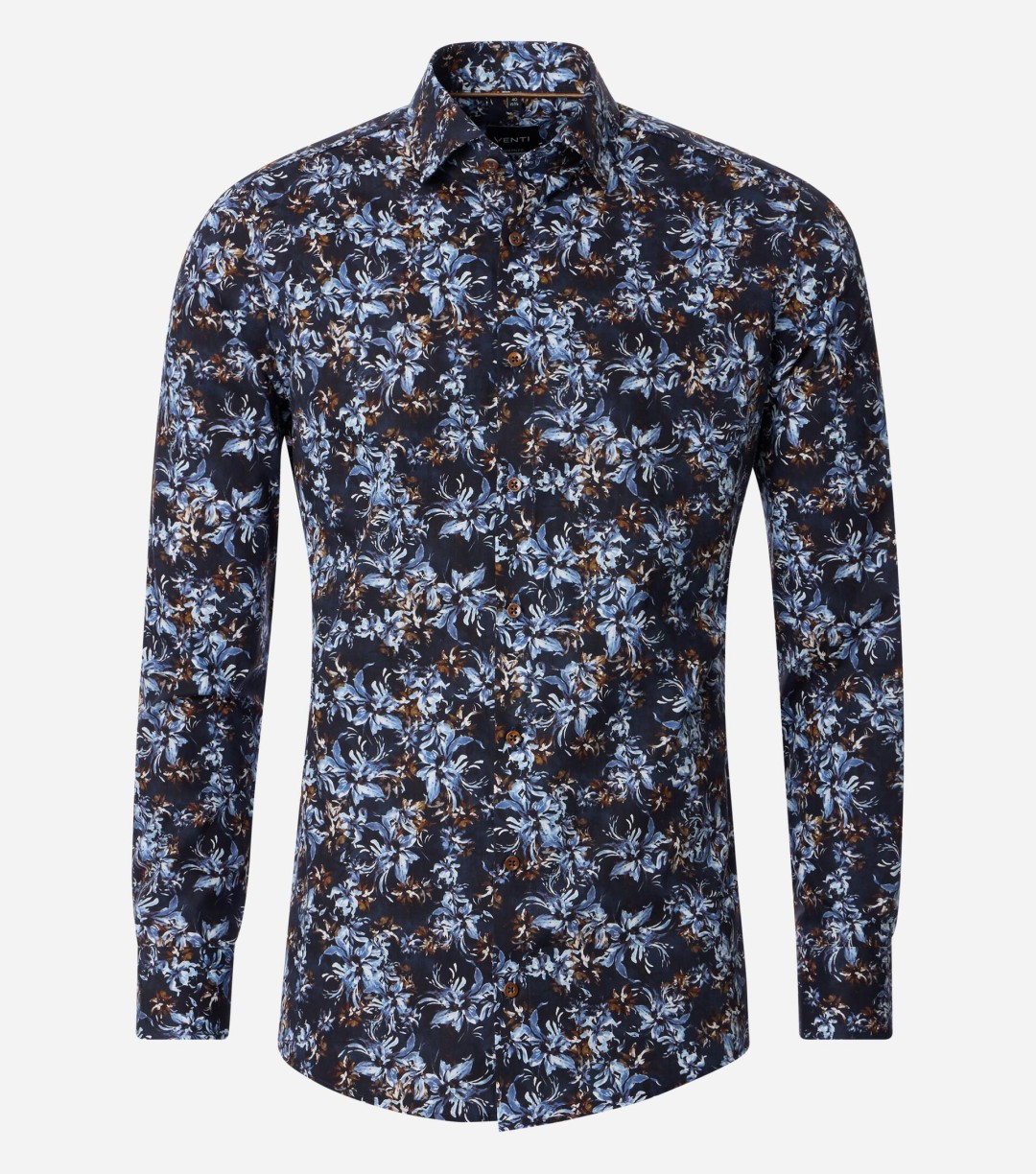 Chemise Marine Venti en coupe Modern Fit, fabriquée en 100% coton, au motif imprimé tendance qui apporte style et personnalité. A la fois élégante et moderne, elle se porte aussi bien au bureau que pour sortir. Confortable, respirante et pleine de caractère, c'est la pièce idéale pour ceux qui veulent afficher un look chic et affirmé en toutes occasions.