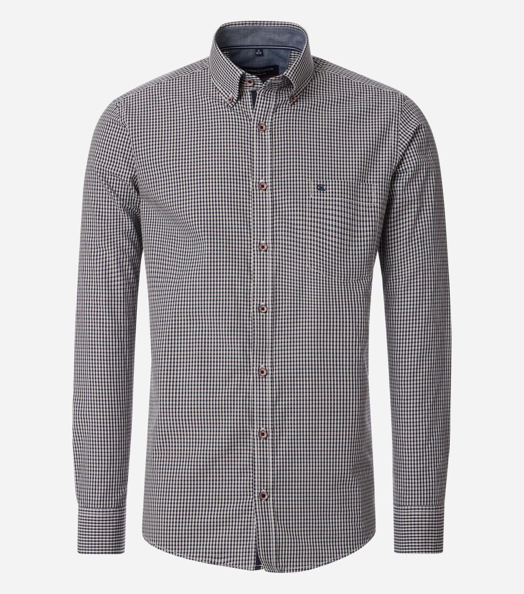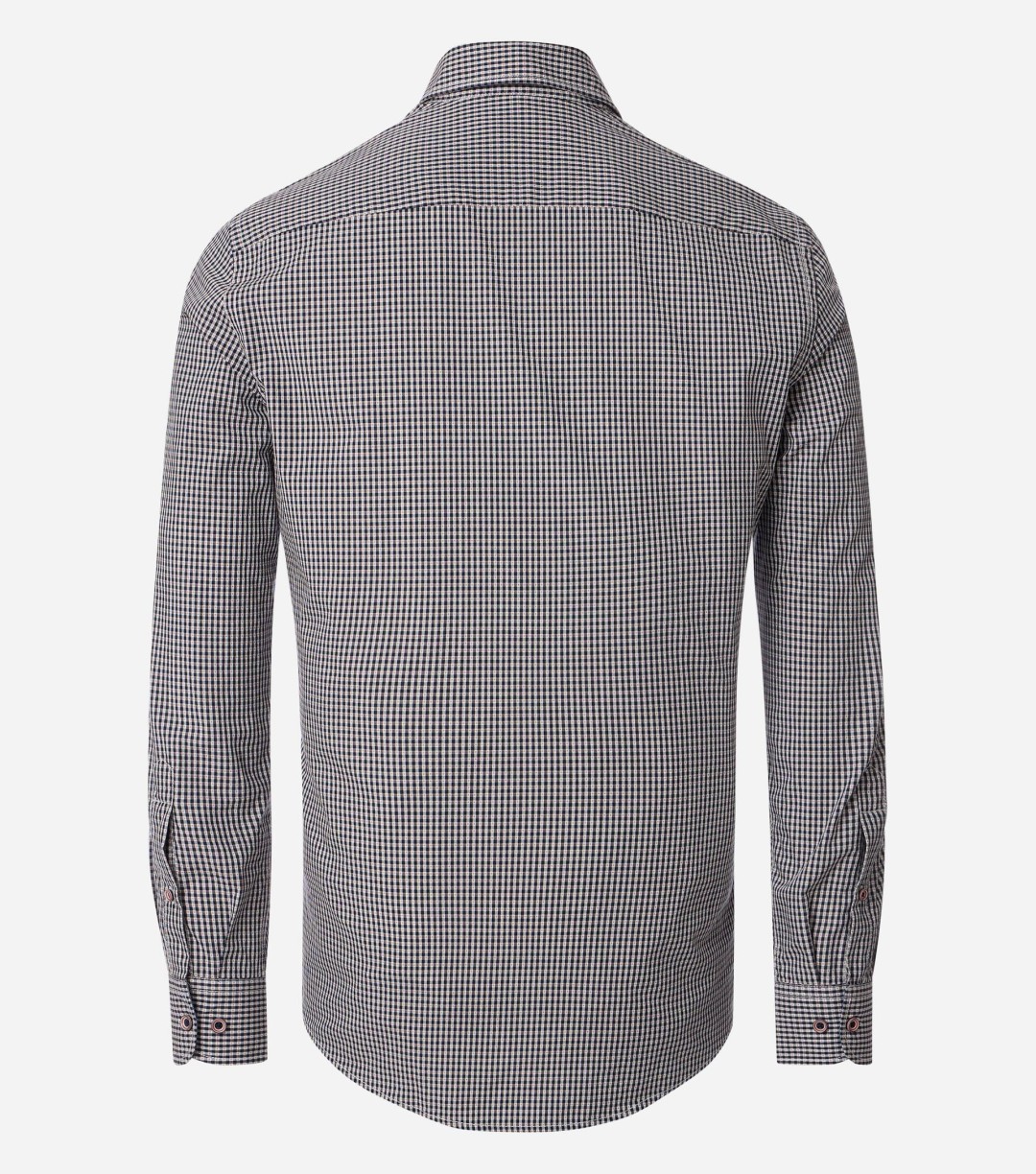 La chemise bordeaux est un modèle élégant à carreaux, idéal pour apporter une touche moderne à vos tenues. Conçue en 100% coton pour un confort optimal, elle présente une coupe Modern Fit, des manches longues et un col classique. Sa qualité d'impression et sa finition soignées en font une pièce tendance et polyvalente, parfaite au bureau comme pour les sorties.