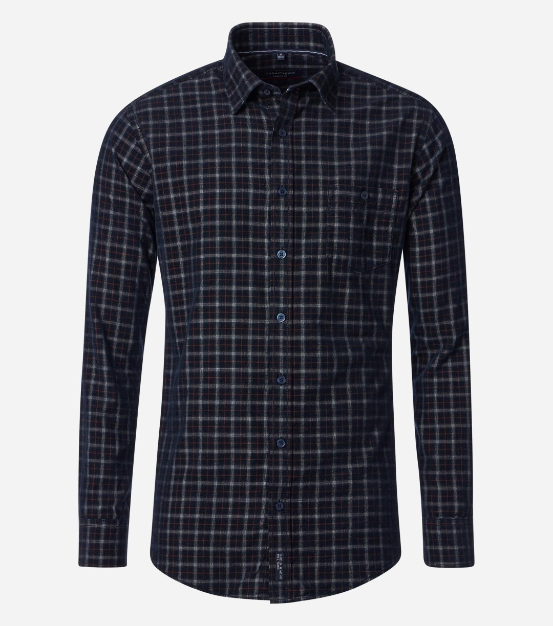 La chemise marine est un modèle élégant à carreaux, idéal pour apporter une touche moderne à vos tenues. Conçue en 100% coton pour un confort optimal, elle présente une coupe Modern Fit, des manches longues et un col classique. Sa qualité d'impression et sa finition soignées en font une pièce tendance et polyvalente, parfaite au bureau comme pour les sorties.