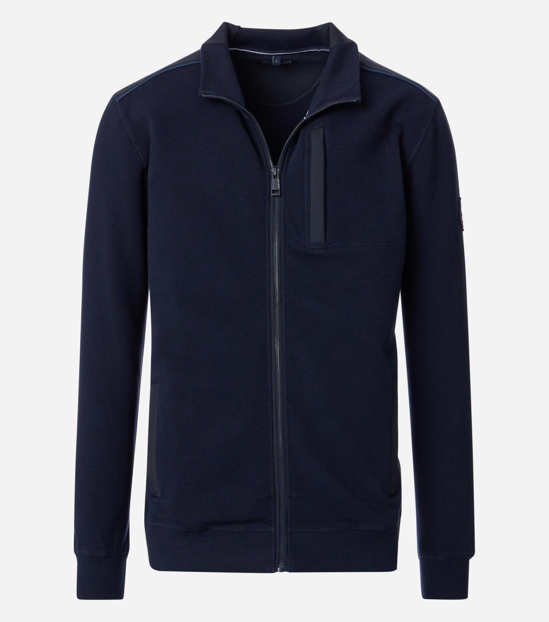 Ce gilet offre un style moderne et confortable grâce à sa maille circulaire douce. Dotée de manches longues, d'un col montant et d'un design uni, elle est parfaite pour un look décontracté et élégant au quotidien. Confectionnée en 95 % de coton et 5 % élasthanne, elle assure confort et liberté de mouvement.