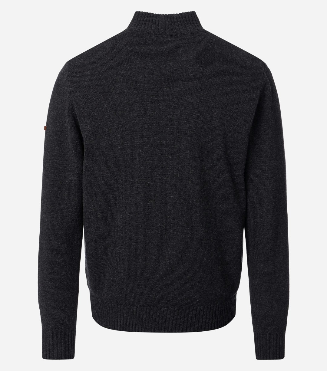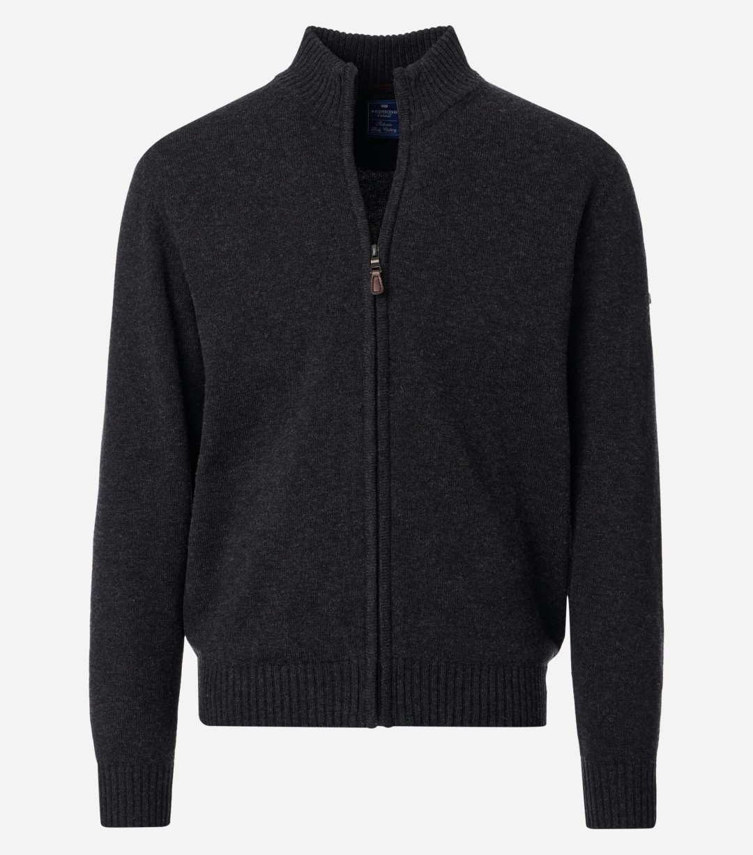 Gilet uni à manches longues en maille moulinée, offrant une texture subtile et élégante. Confectionné en 54 % coton, 29 % laine et 17 % polyamide, il assure confort, chaleur et résistance.