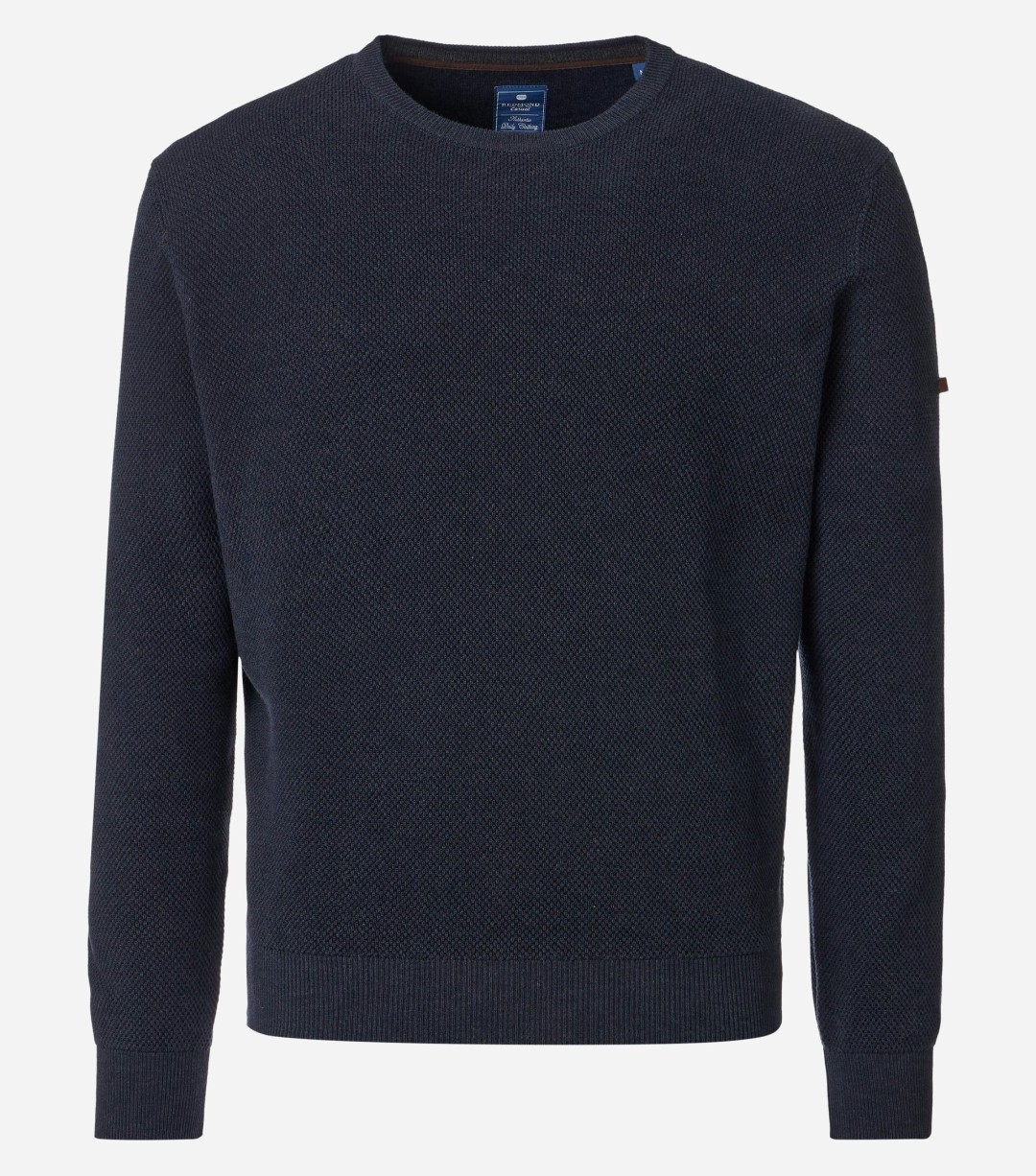 Ce pull marine uni à manches longues avec col rond allie confort et élégance décontractée.