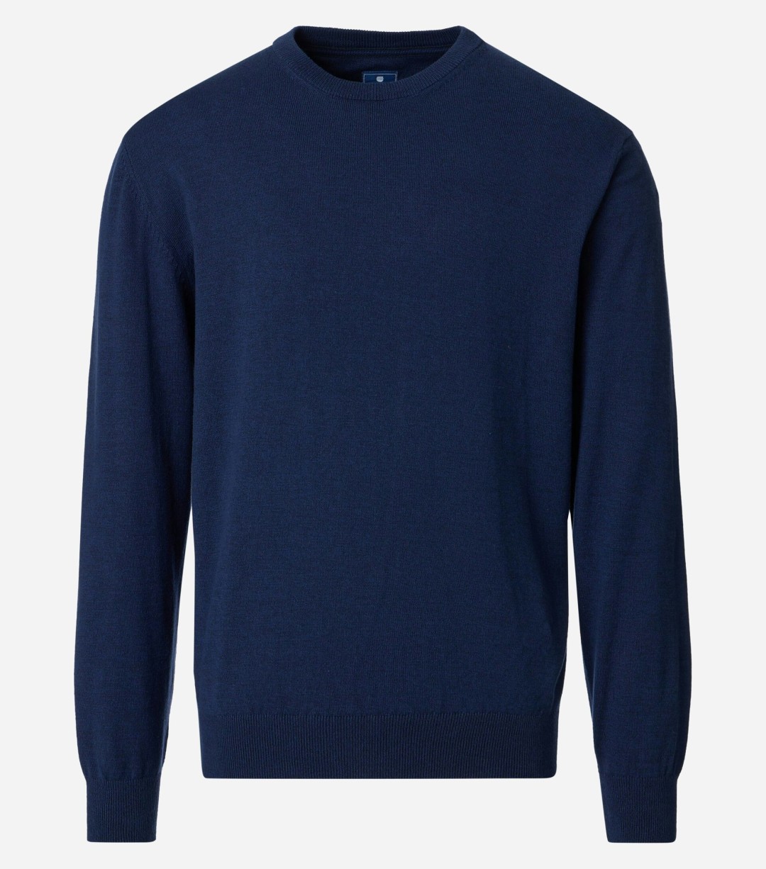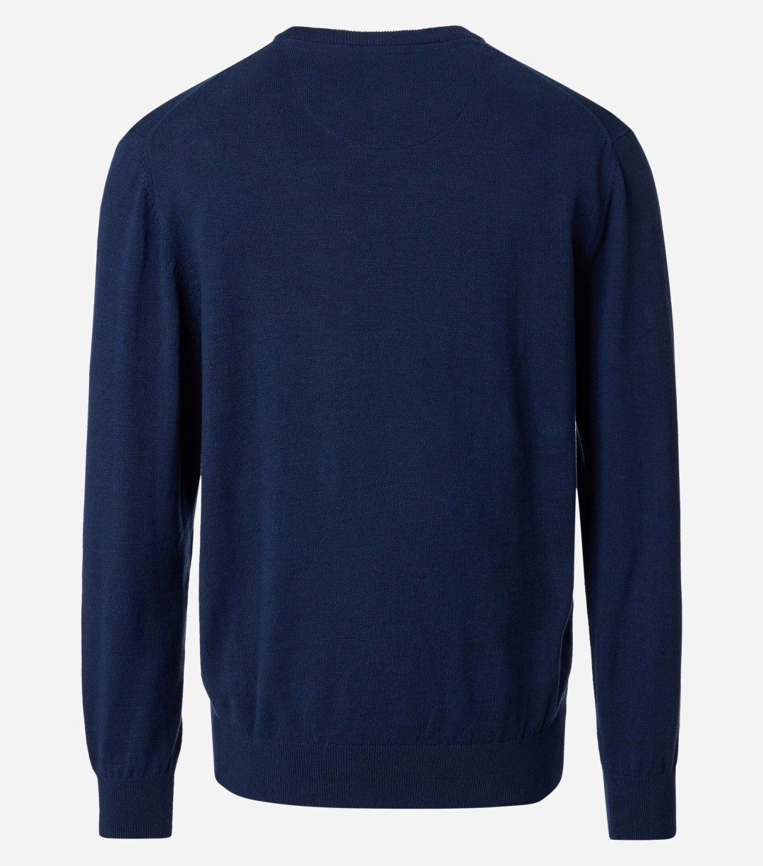 Ce pull uni à manches longues avec col rond allie confort et élégance.