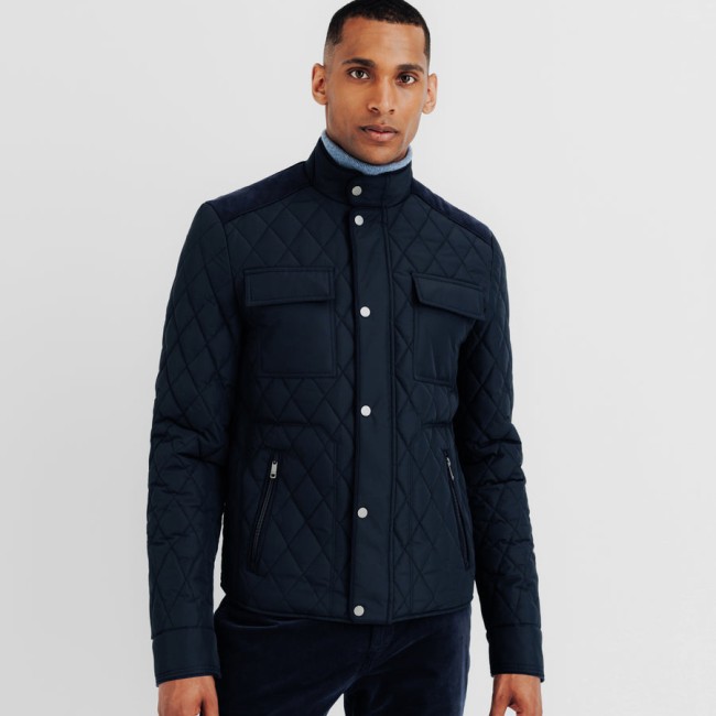 Blouson matelassé Marine avec un empiècement en suédine sur les épaules.