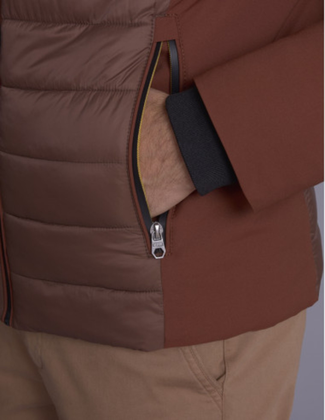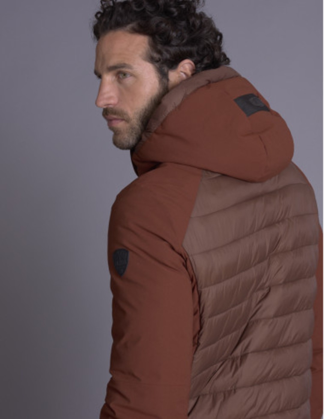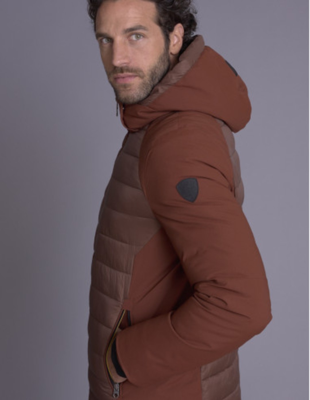 La doudoune DOLMES chestnut marie l’héritage automobile à une élégance intemporelle. Son design bimatière sophistiqué, associé à la technologie Sorona®, en fait une pièce signature pour un look urbain raffiné.