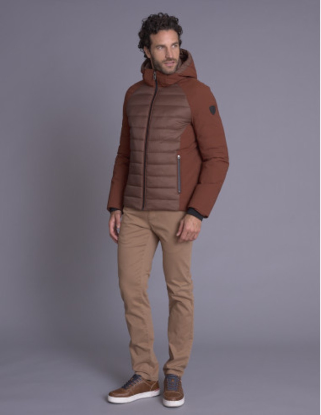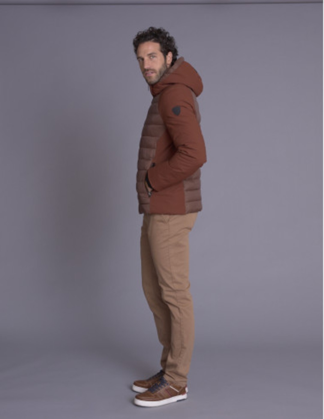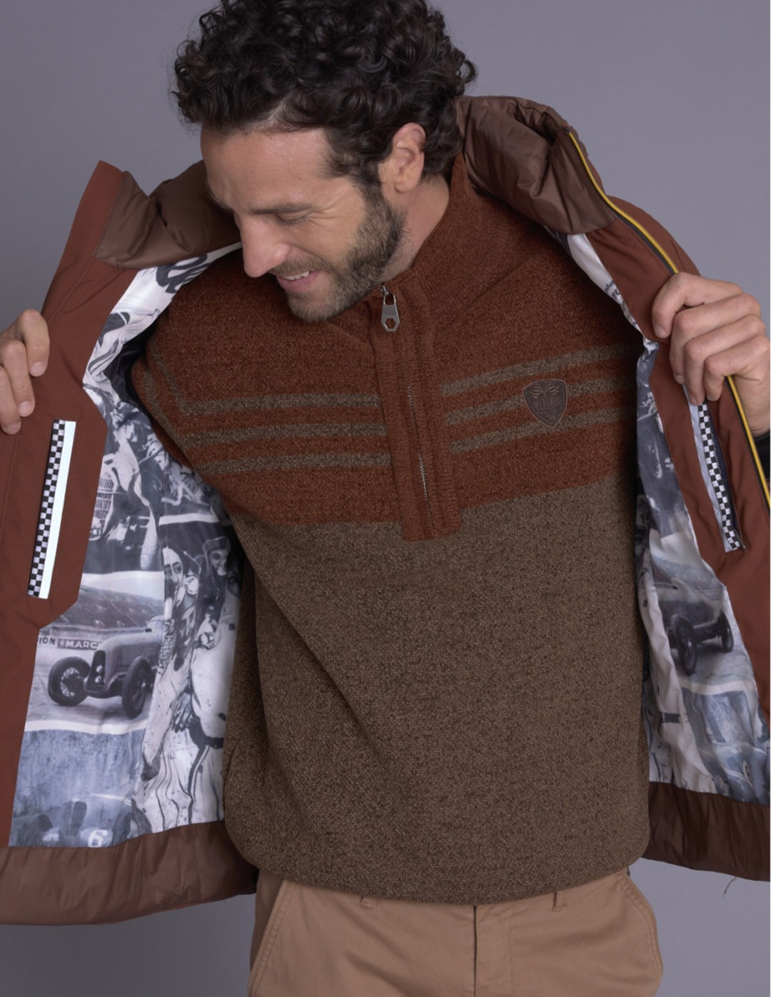 La doudoune DOLMES chestnut marie l’héritage automobile à une élégance intemporelle. Son design bimatière sophistiqué, associé à la technologie Sorona®, en fait une pièce signature pour un look urbain raffiné.