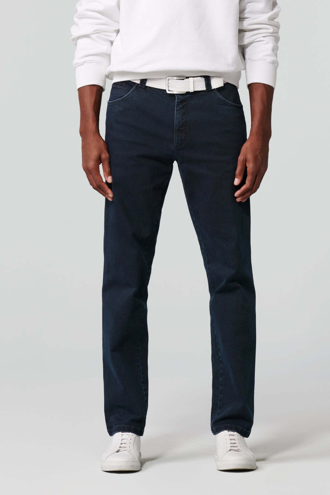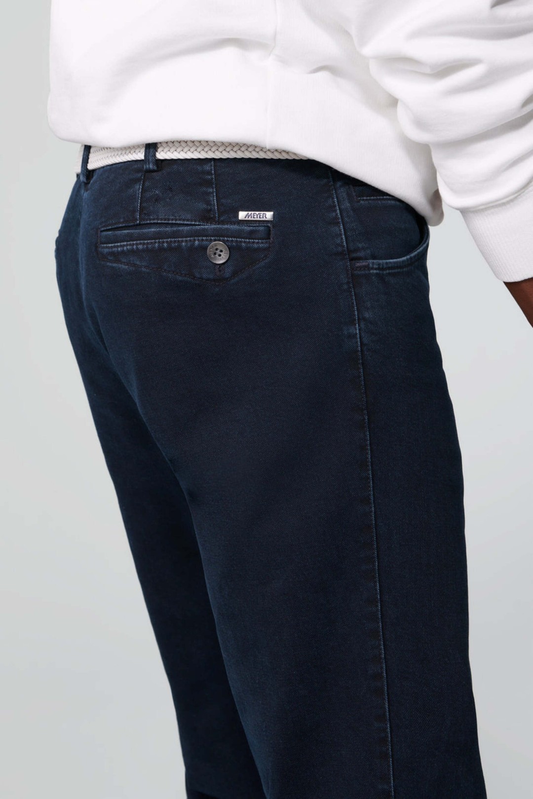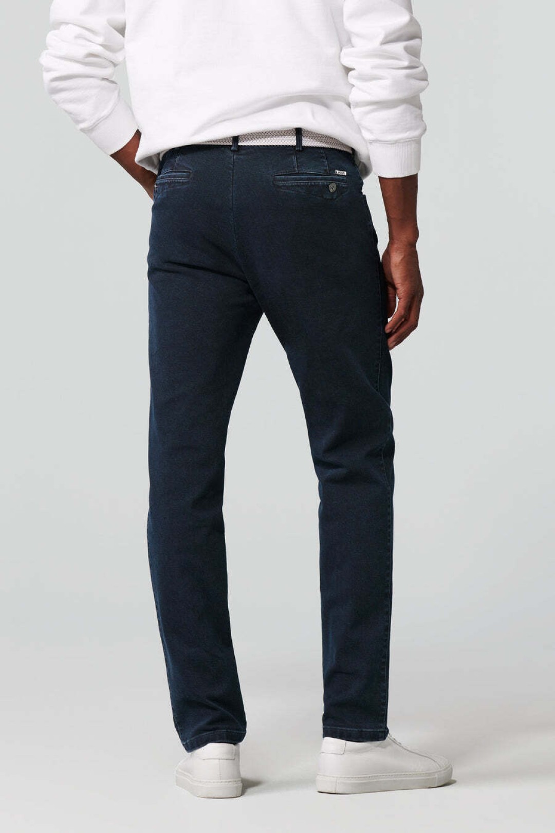 Ce chino slim en denim haut de gamme séduit par son tissu extensible composé de 94 % coton biologique, 4 % Elastomultiester EcoMade et 2 % élasthanne, offrant une liberté de mouvement totale et un confort optimal. Polyvalent, il s’adapte aussi bien à une tenue de travail qu’à un look décontracté pour les loisirs. Les finitions soignées, comme la ceinture arrondie et la coupe moderne, assurent un tombé parfait, tandis que la doublure tissée colorée et la poche de sécurité zippée pour argent et cartes ajoutent une touche pratique et raffinée.