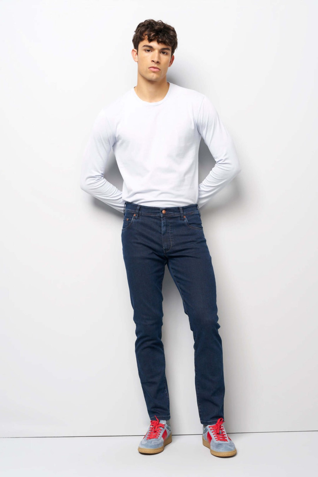 Ce denim en coton biologique, agréablement doux, séduit par ses surpiqûres multicolores subtilement mises en valeur par un coloris foncé élégant. Sa coupe Loose fit et son délavage réalisé à la main en font une pièce polyvalente, idéale aussi bien pour une tenue de travail que pour un look décontracté. Grâce à ses propriétés stretch, il offre une liberté de mouvement maximale et un confort optimal au quotidien.